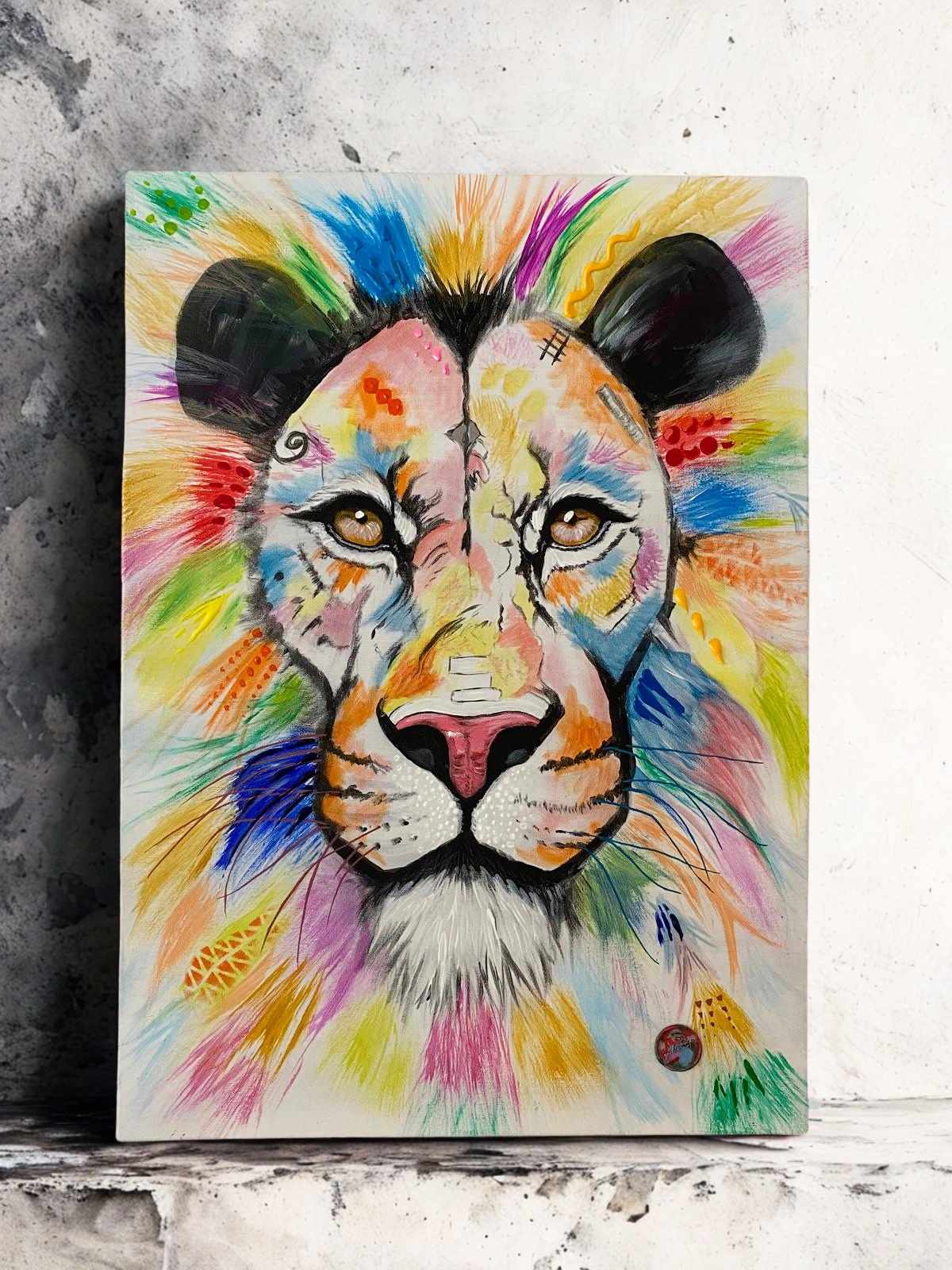 Acrylgemälde Löwe 60x80 cm – Buntes handgemaltes Leinwandbild von Gjulis_art