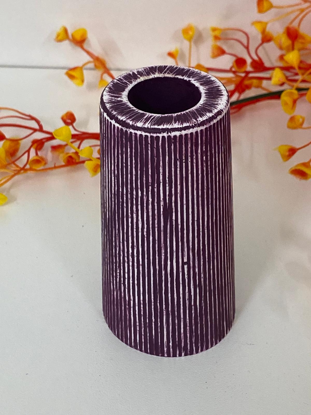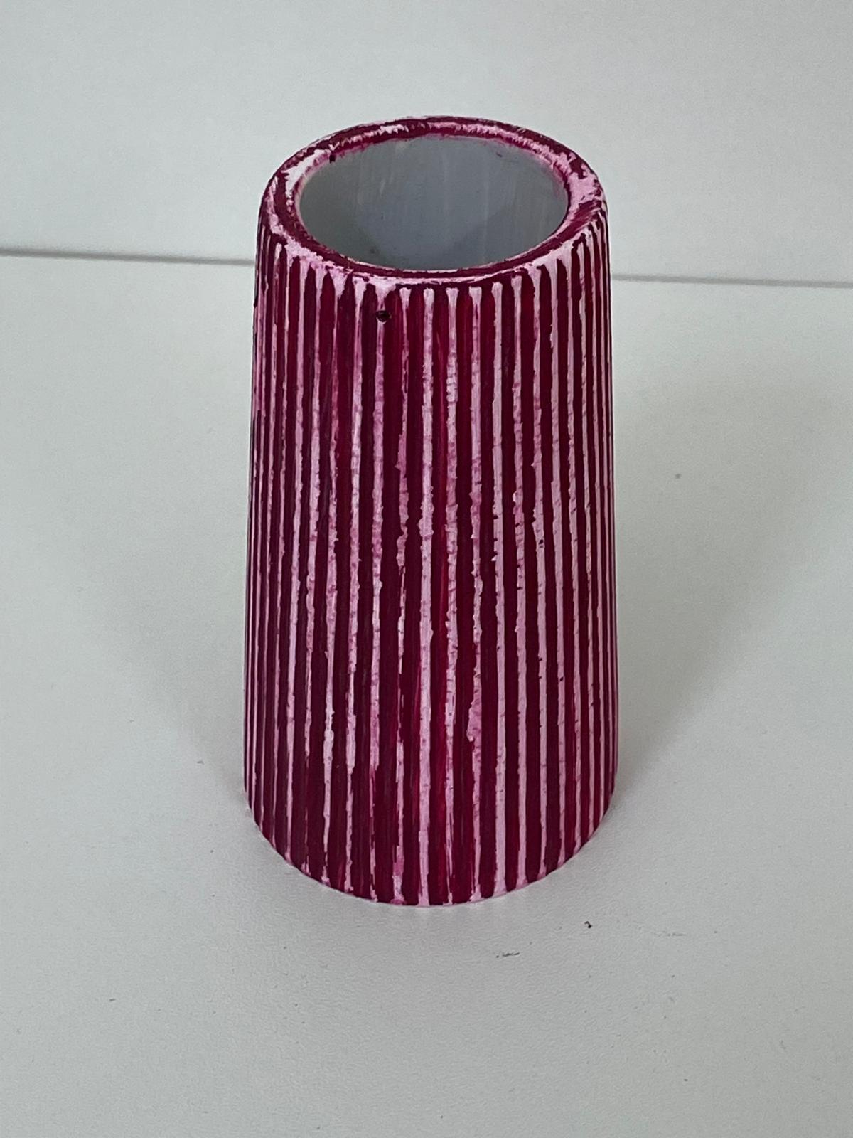 Die Vase hat eine kompakte Größe von ca. 10–15 cm Höhe und ist damit perfekt geeignet für Regale, Sideboards, Fensterbänke oder kleine Deko-Arrangements.
