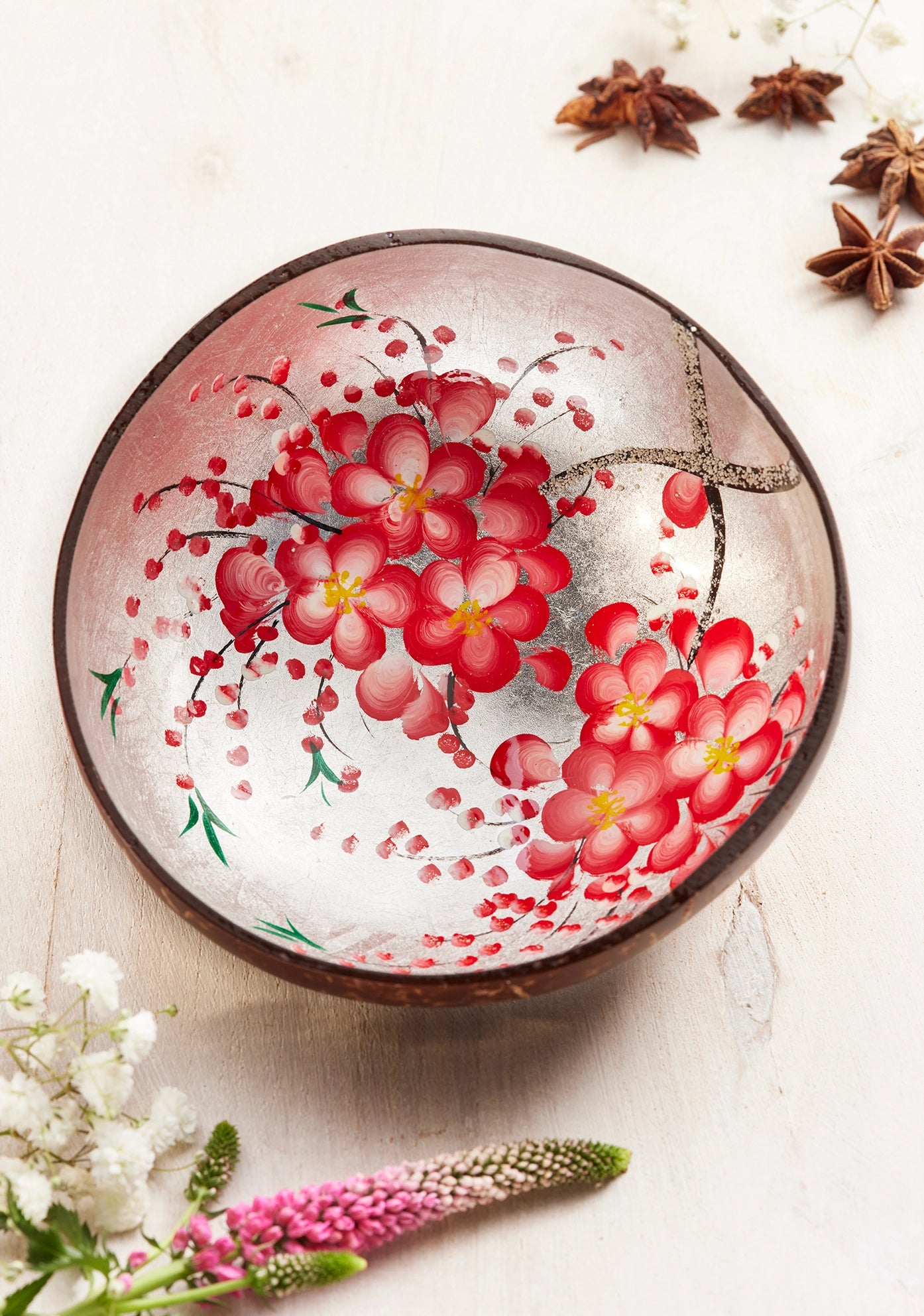 Diese einzigartige Servierschale wird aus recycelten Kokosnussschalen gefertigt, die bei der Lebensmittelherstellung übrig bleiben. Jede Schale ist ein Unikat – nachhaltig, handgefertigt und mit kunstvollem Design veredelt.